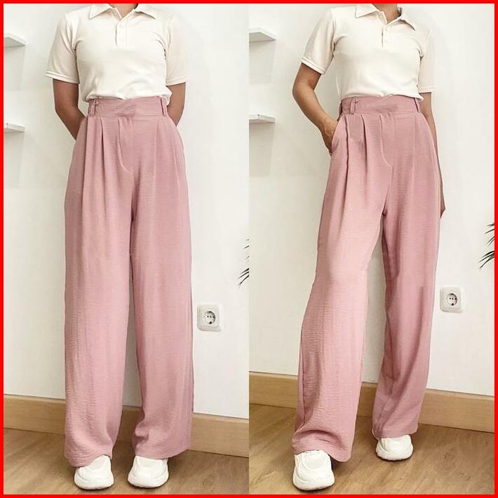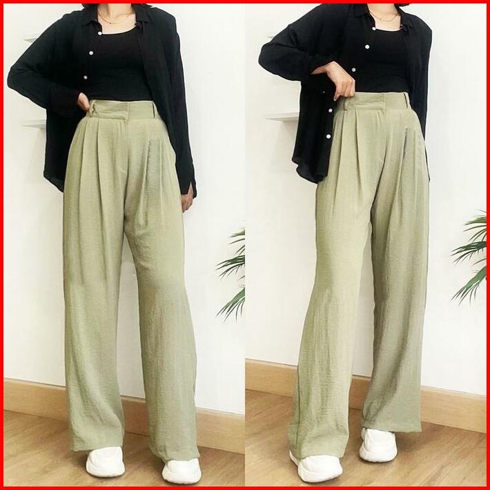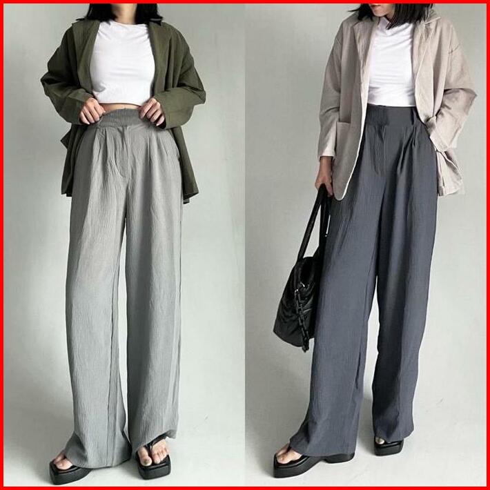 Celana Kulot Crinkle Airflow Highwaist Wanita Loose Cullote Pant Polos