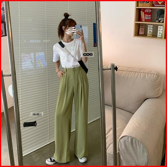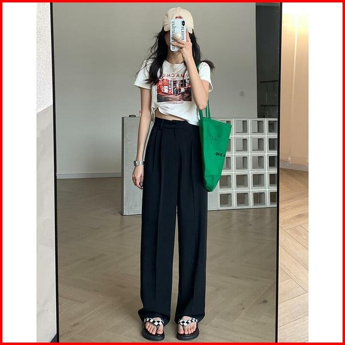 Celana Kulot Wanita Korean Style Loose Hitam Celana Panjang Wanita Terbaru Kekinian High Waist