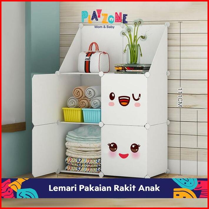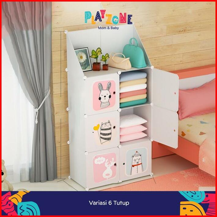 Play Zone Lemari Pakaian Rakit Plastik Lemari Baju Rak Buku Pintu Kotak Rak Serbaguna Susun Furniture