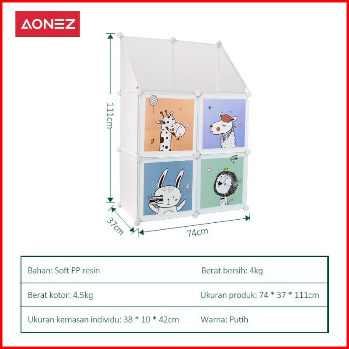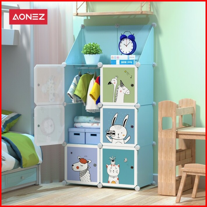 Aonez Lemari Pakaian Lemari Plastik Rak Serbaguna 2 4 8 Susun Wardrobe