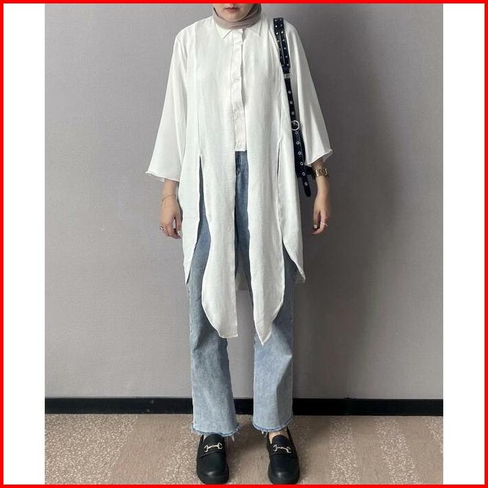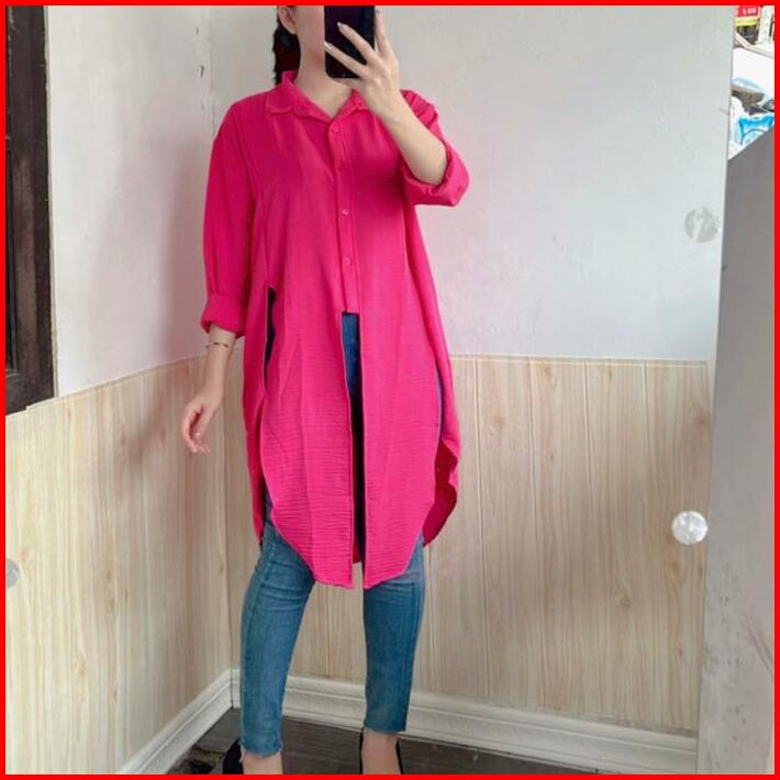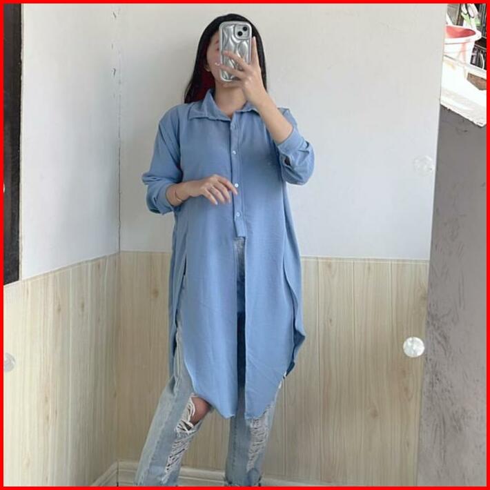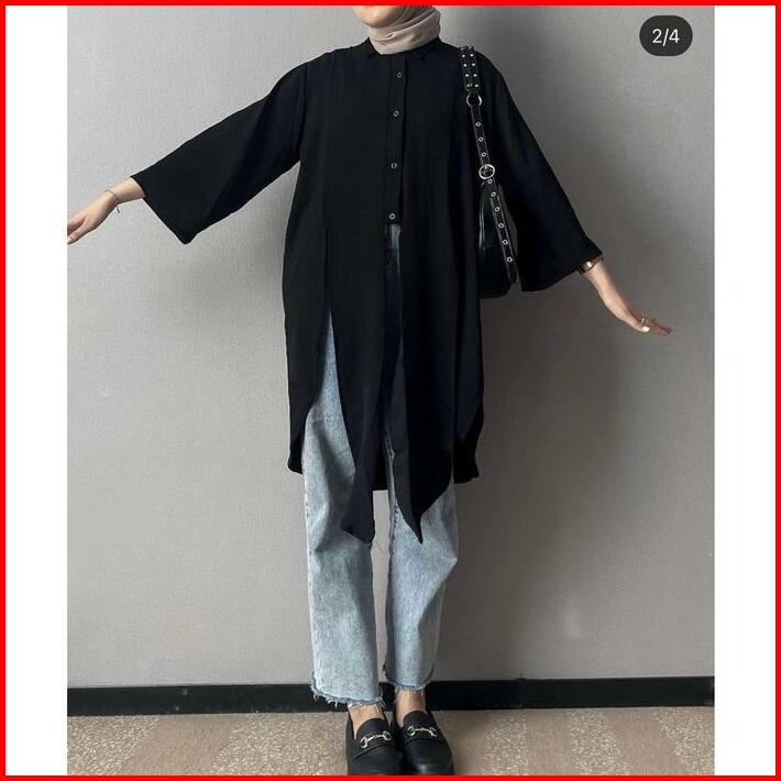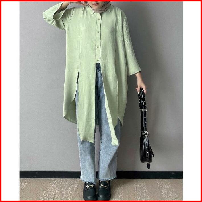 Heme Tunik Baju Wanita Blouse Crincle Airflow Lengan Kancing Panjang Atasan Muslim