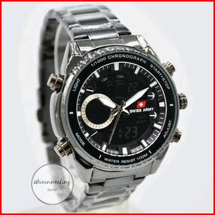 Jam Tangan Pria Swiss Army Rantai Digital Analog Quicksilver Gc