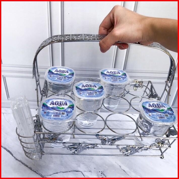 Keranjang Tempat Rak Air Mineral -12 Aqua Gelas Stainless Steel