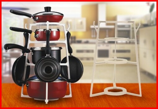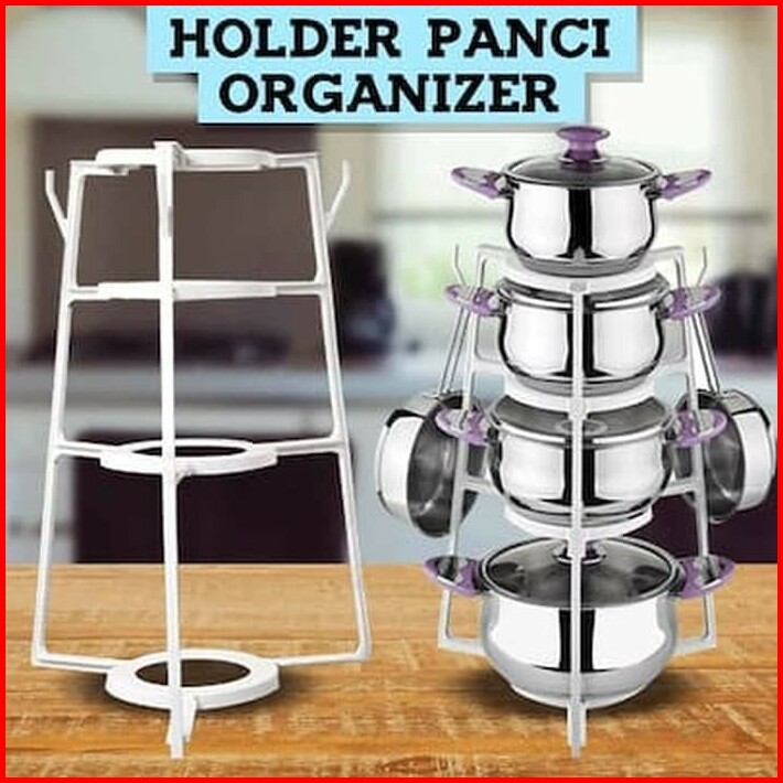 Rak Panci Holder Organizer Cookware Teflon Wajan 4 Susun Lid Dapur