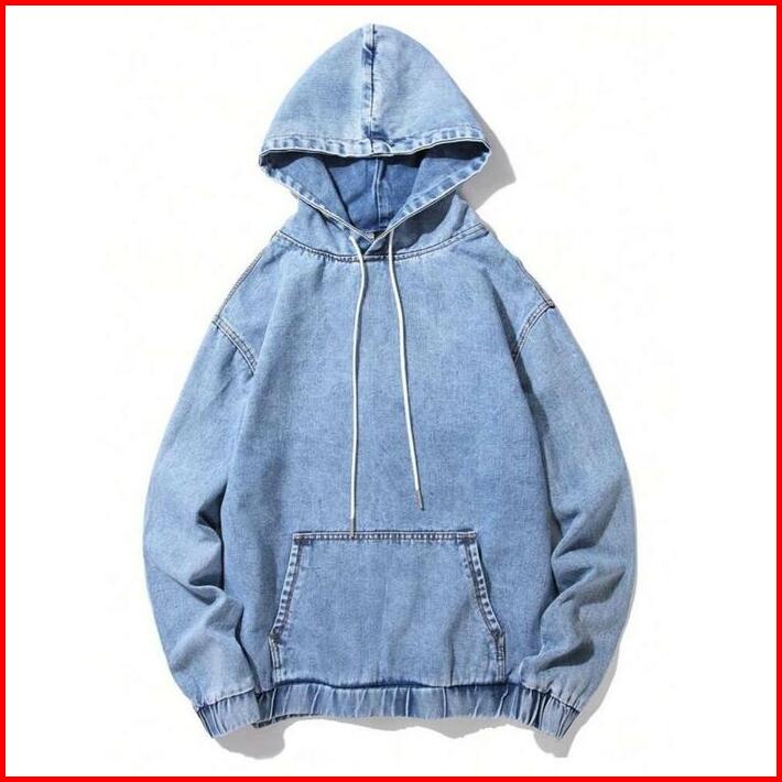Jaket Hodie Bahan Jeans Denim Varian Warna Blue Sanwans Black Sanwas Nyaman Panjang Top Pria Wanita Keren Biru Hitam