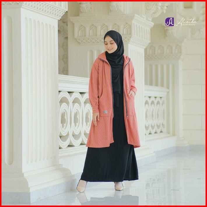 Fathiyah Outer By Alietha Jaket Wanita Women Basic Jacket Long Outer Muslimah Panjang