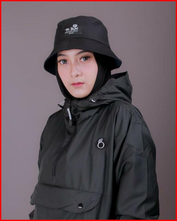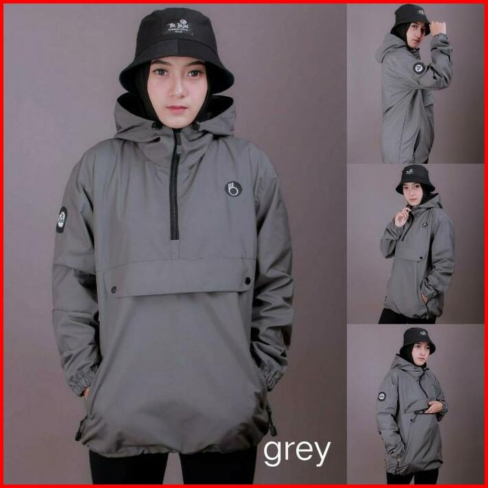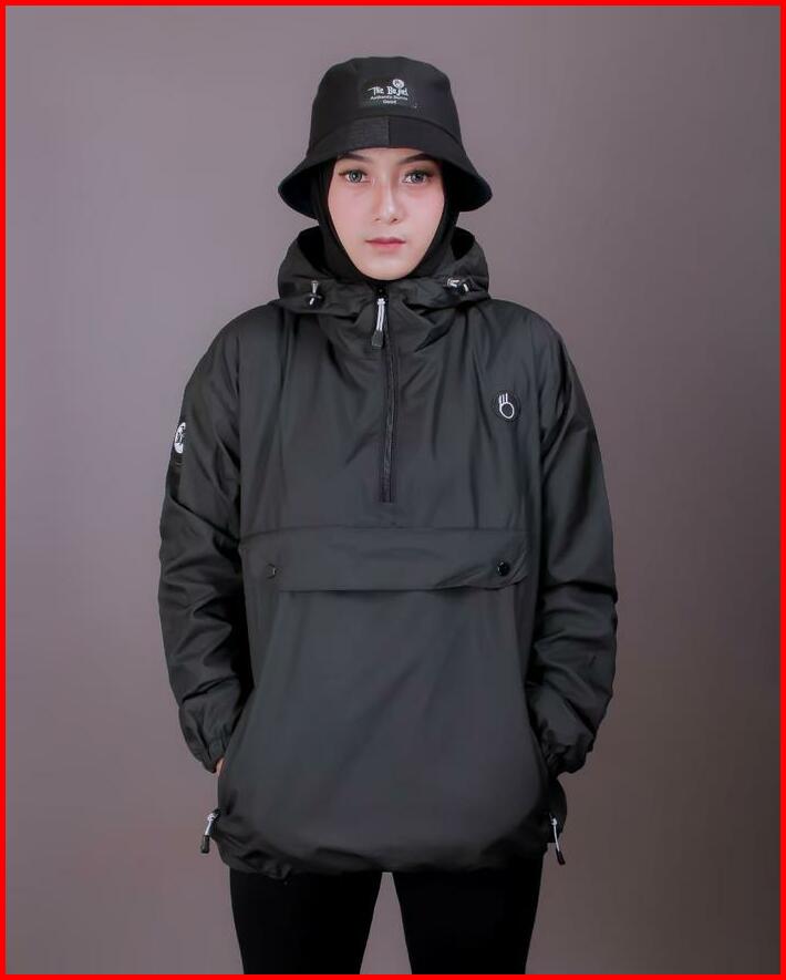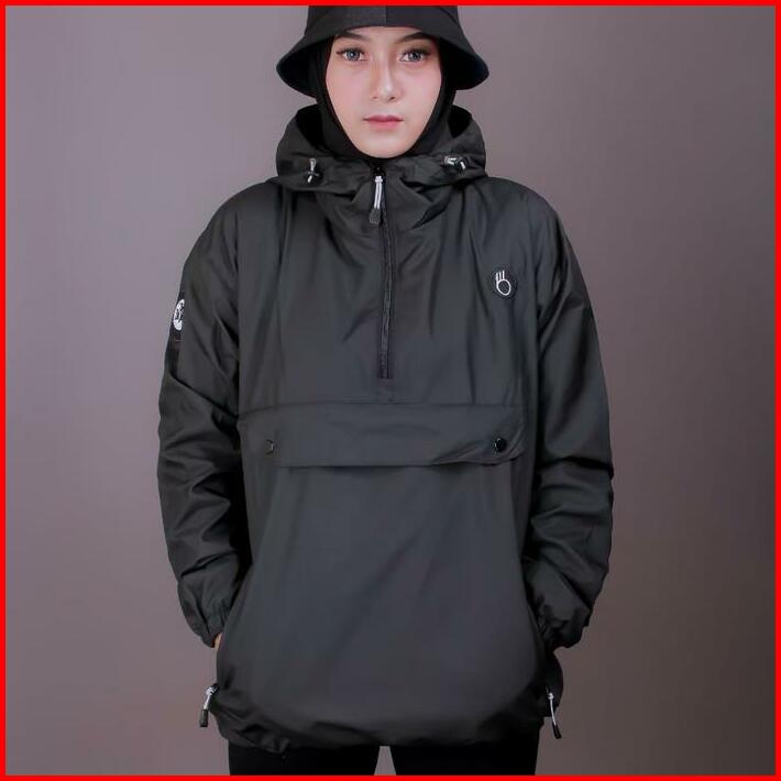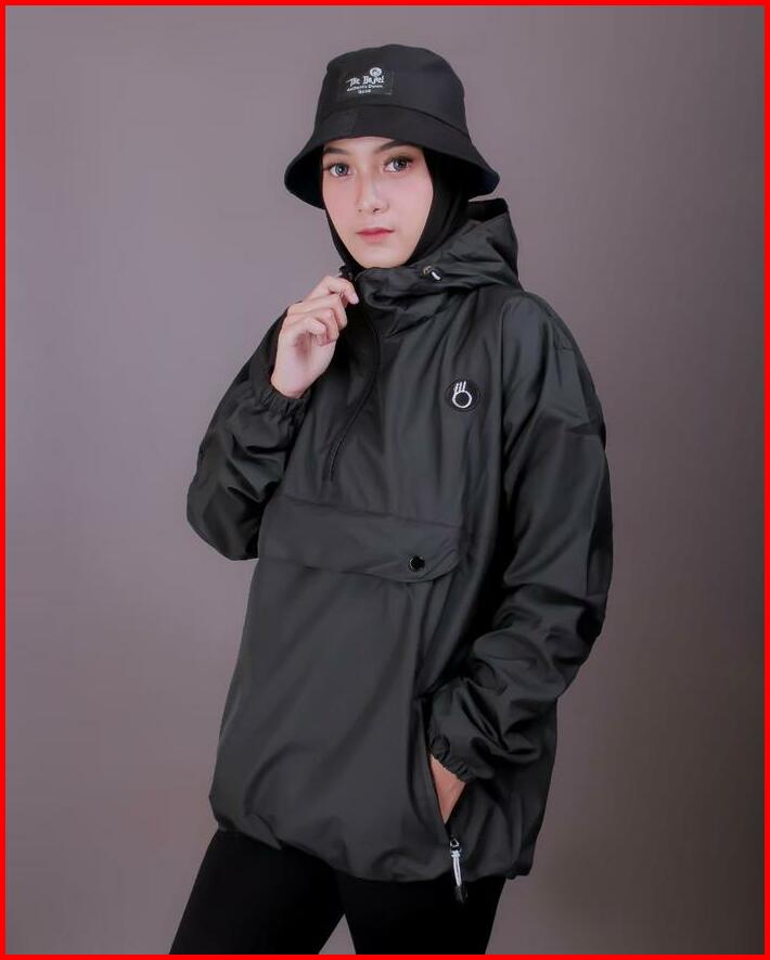 Jaket Cagoule Simple Wanita Pria Jaket Parasut Tahan Air Jaket Saku Besar Depan Panjang Waterproof