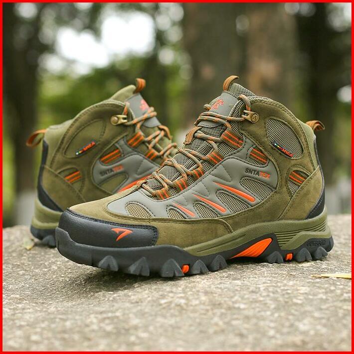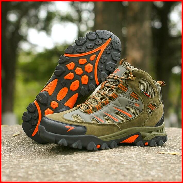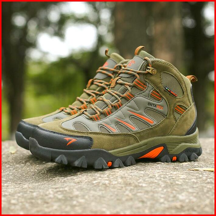Sepatu Gunung Pria Snta 493 Green Orange Hiking Shoes Trekking Climbing Pendaki Uniseks Pria Wanita Anti Air Cepat Kerin