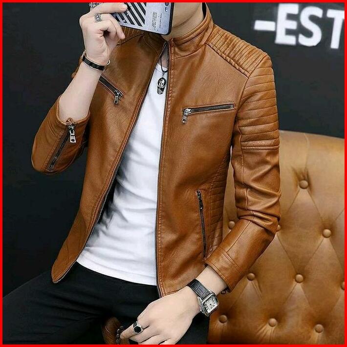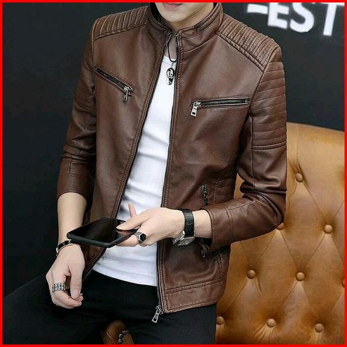 Jaket Semi Kulit Garut Touring Asep Pria Asli Garut Slim-fitting Keren Panjang Kancing Casual