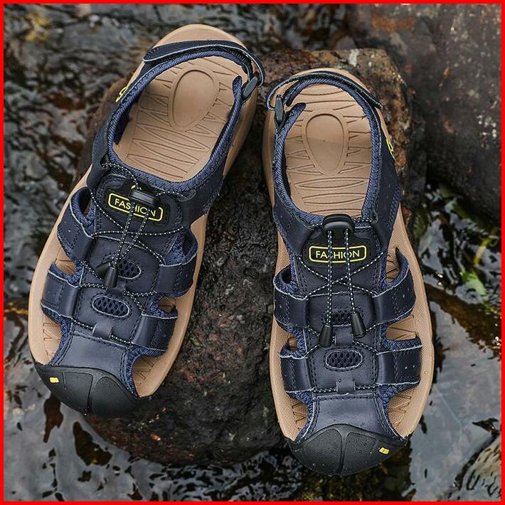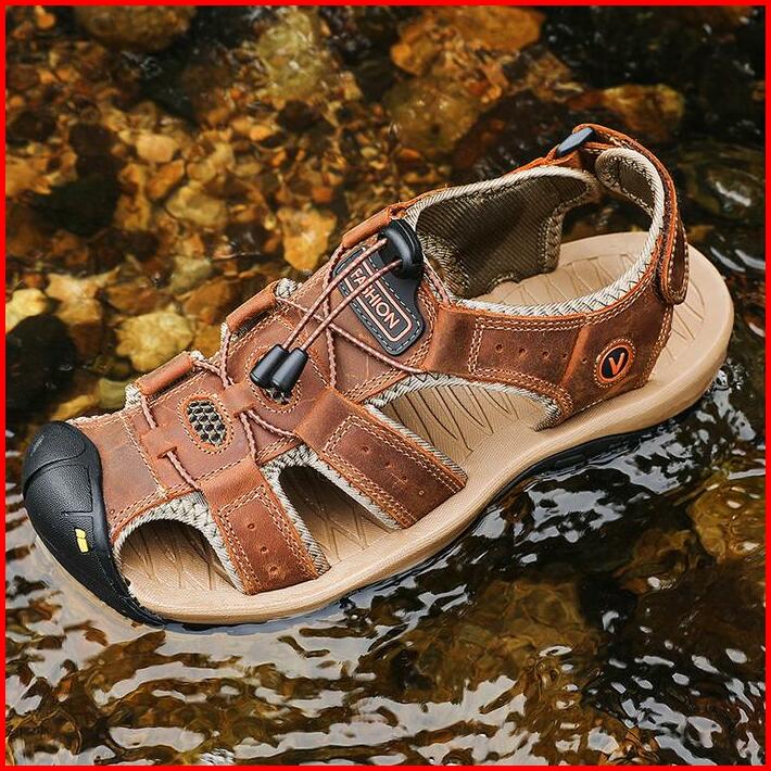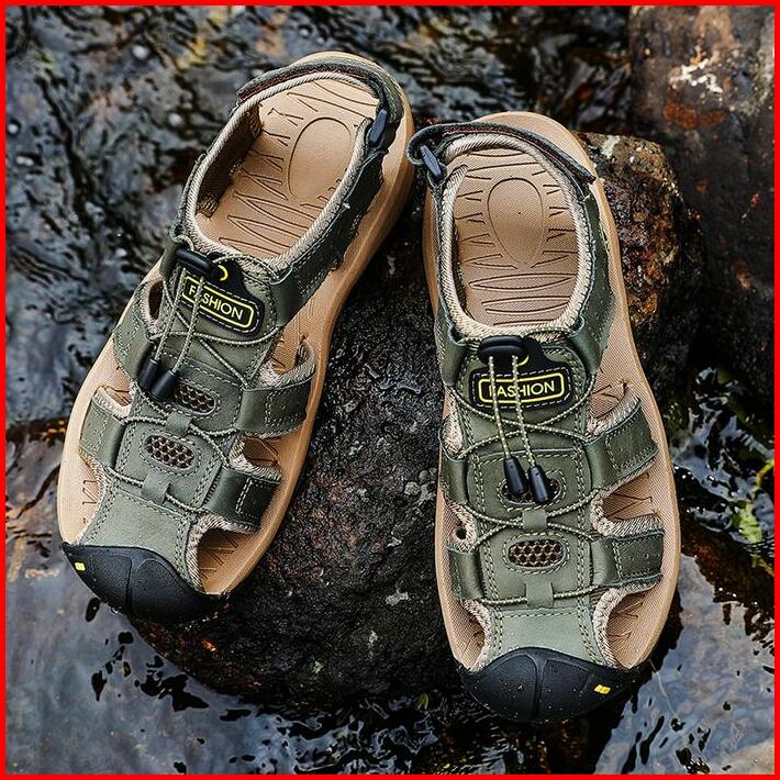 Prelesty Nyaman Kulit Sapi Asli Sandal Pria Gunung Hiking Trekking Outdoor Handmade Sepatu Keren Olahraga Waterproof 011