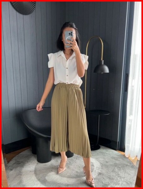 Celana Kulot Plisket Midi Celana Plisket Tanggung Celana 7 8 2