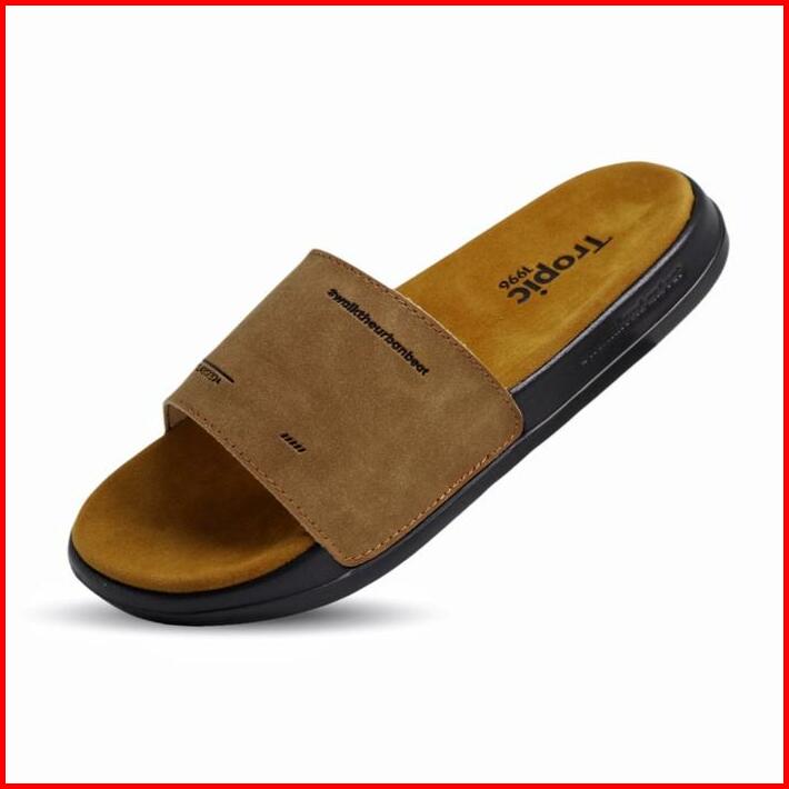 Tropic1996 Bougain Tan Sandal Slide Sandal Slip On Sandal Pria Sandal Selop Shoes Sendal Jalan Ringan