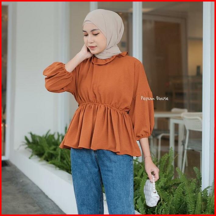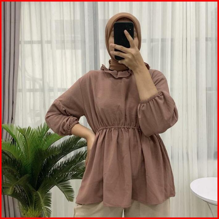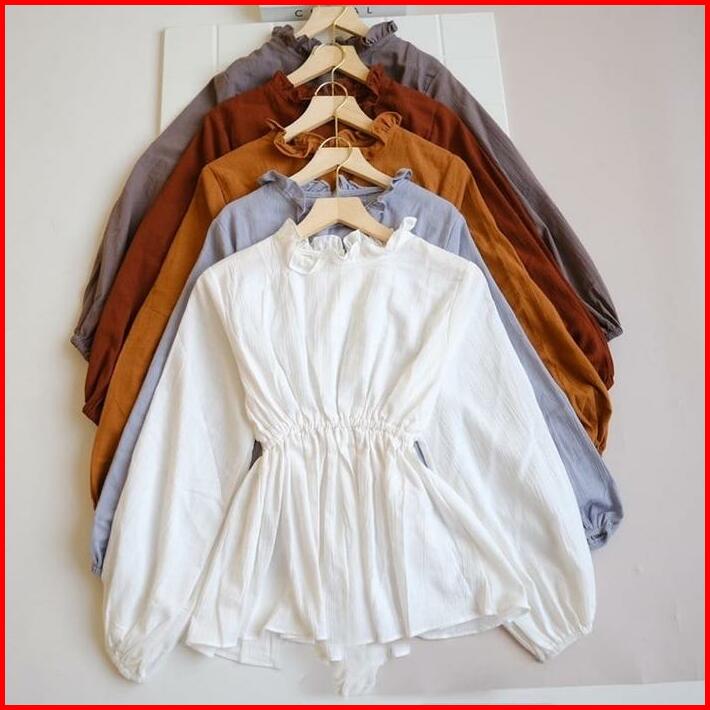 Sita Blouse Kerut Pinggang Myra Top Blouse Crincle Pinggang Kerut Olla Blouse Polos Vintage Korean Style
