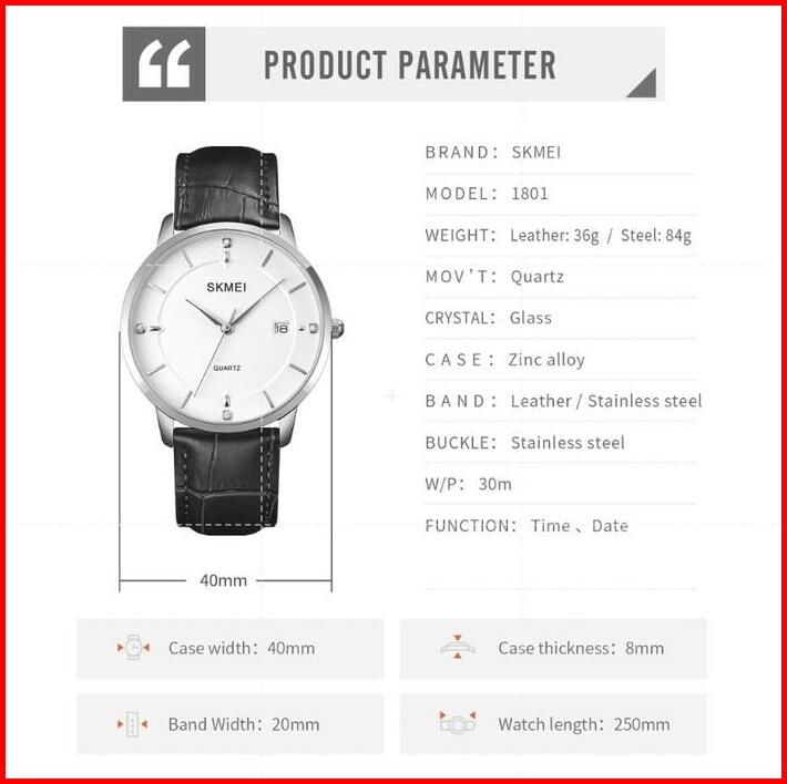 Jam Tangan Pria Wanita Skmei 1801 Analog Tanggal Date Original Skmei Men Quartz Stainless Watches