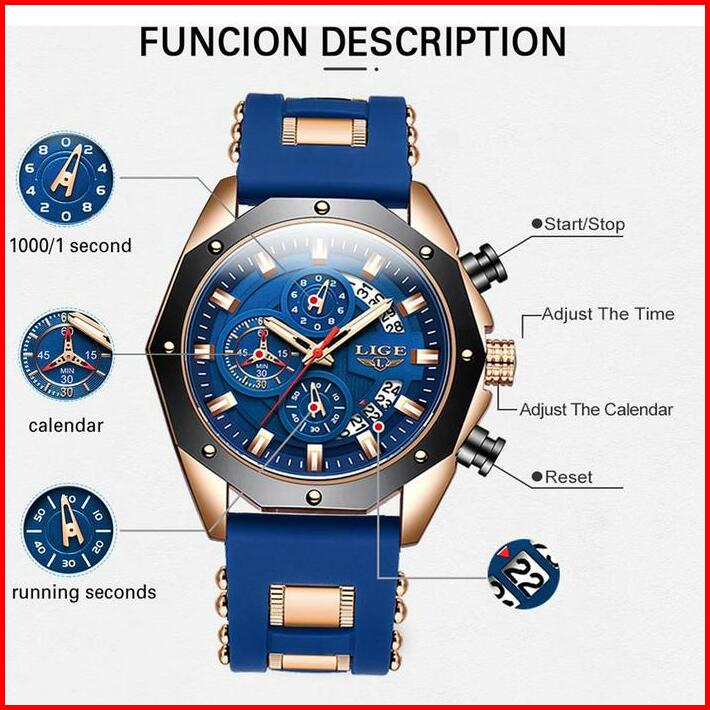 Lige Terbaru Jam Tangan Pria Original Multi Fungsi Anti Air Kalender Kronograf Jam Tangan Hadiah Quartz Watches