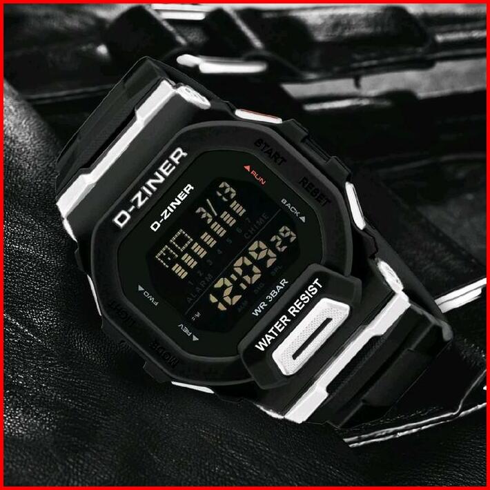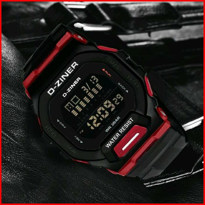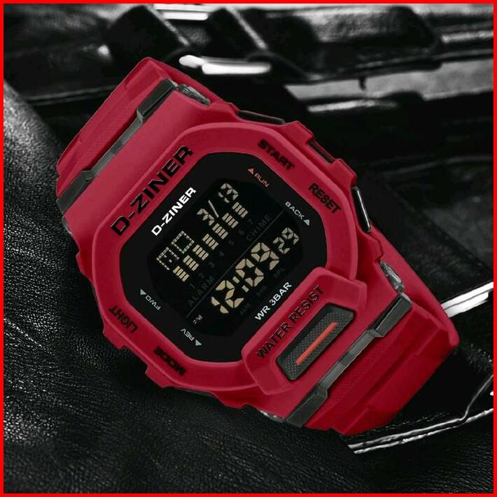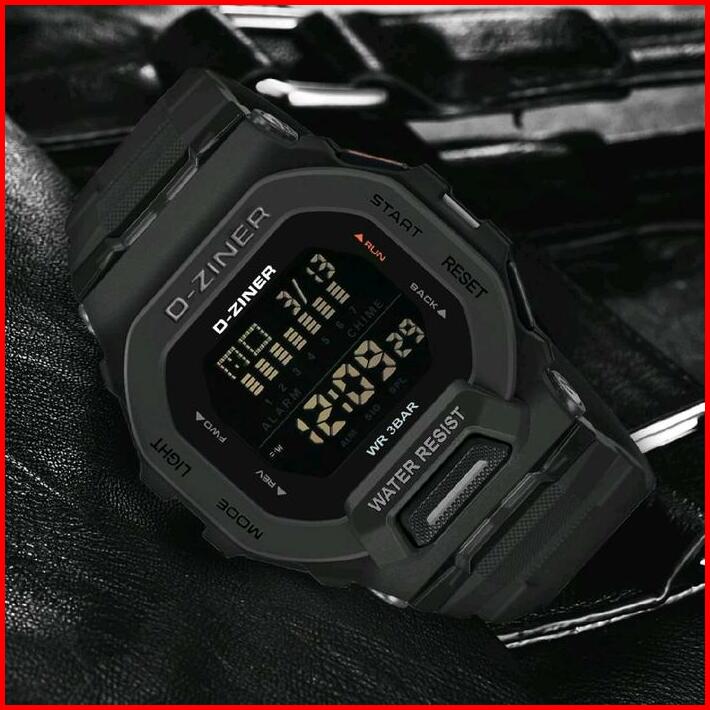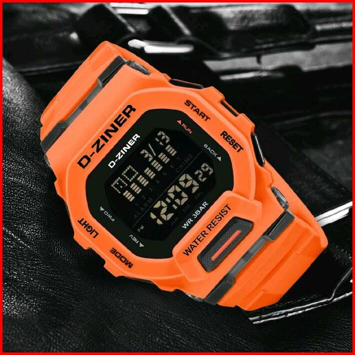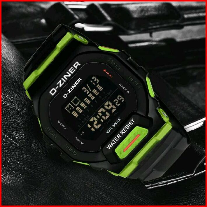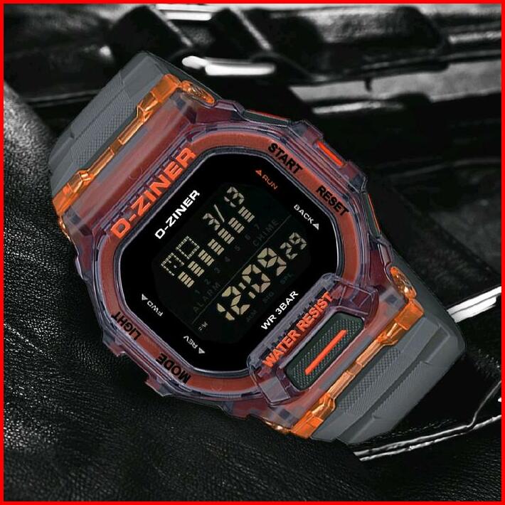 Jam Tangan Pria Mewah D-ziner 8312 Tali Rubber Abu Orange Digital Original Hijau