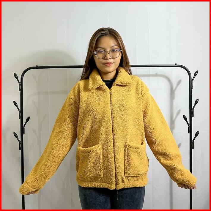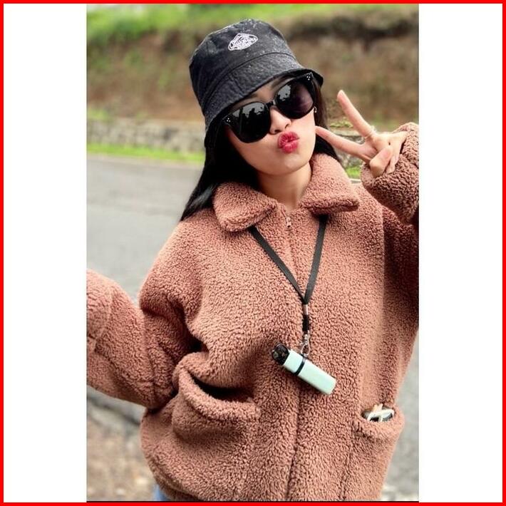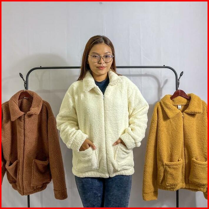 Sweater Jaket Bulu Sherpa Wanita Coat Saku Zipper Cewek Winter Tebal Nyaman