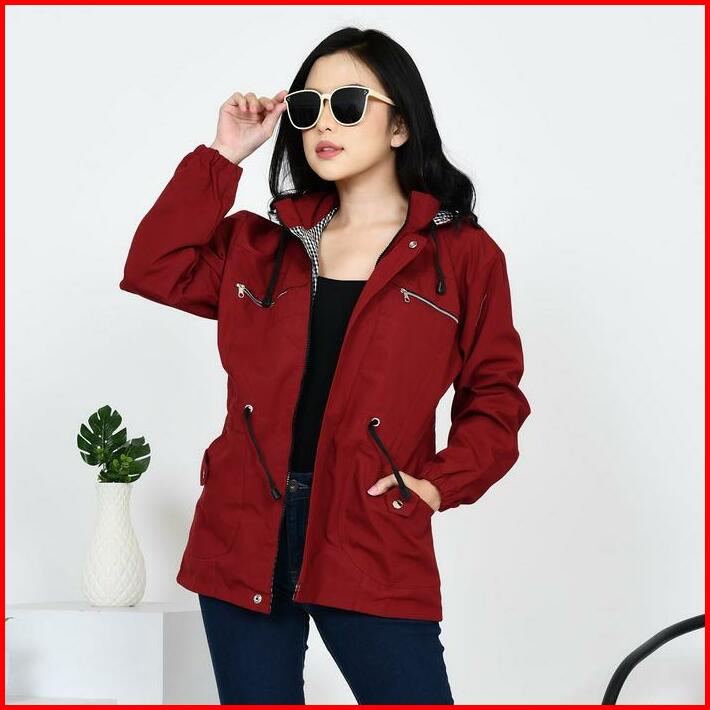 Jaket Parka Wanita Casual Santai Polos Panjang Bahan Canvas Warna Abu
