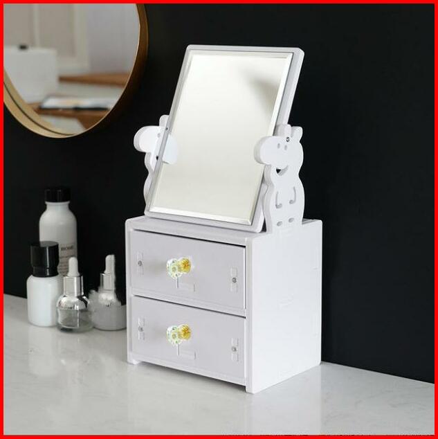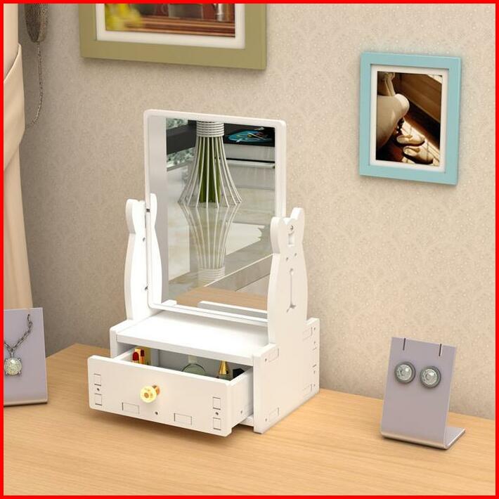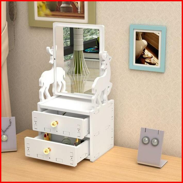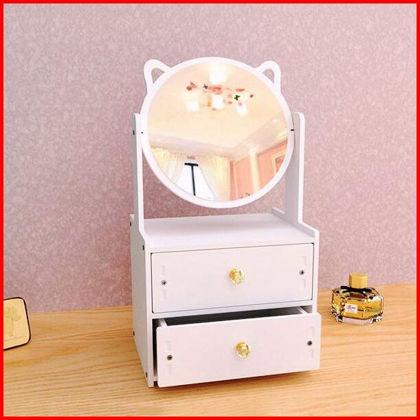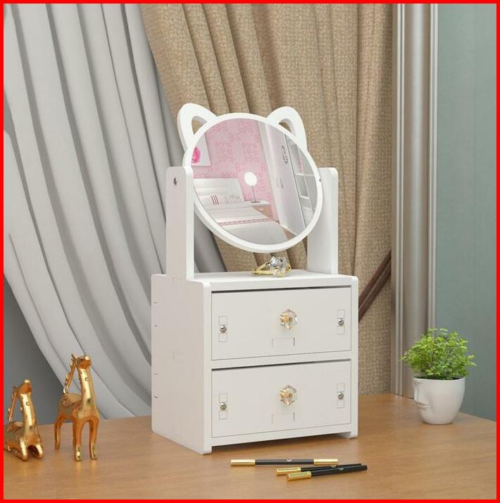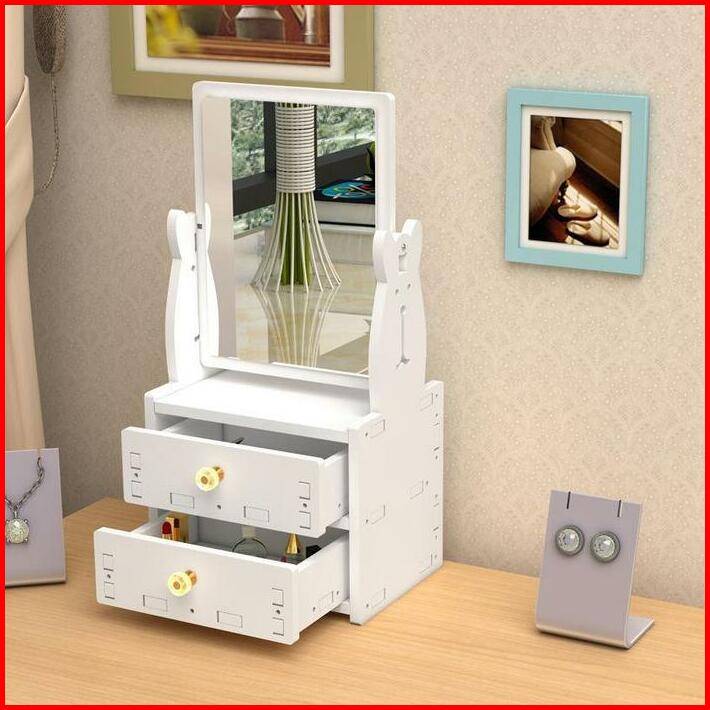 H5579 Rak Dandan 2 Susun Dengan Cermin Rak Tempat Kosmetik Rak Laci Cermin Putih