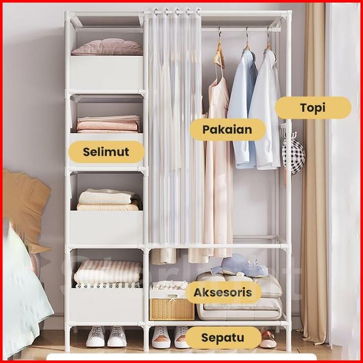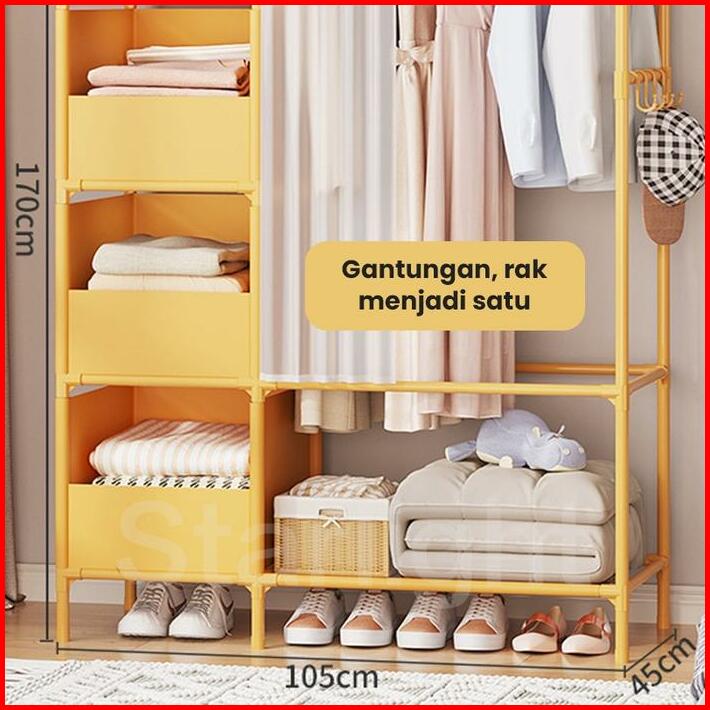Starlight Lemari Pakaian Portable Rak Serbaguna Organizer Tempat Penyimpanan Baju Wardrobe Almari Kotak Rak Serbaguna Su