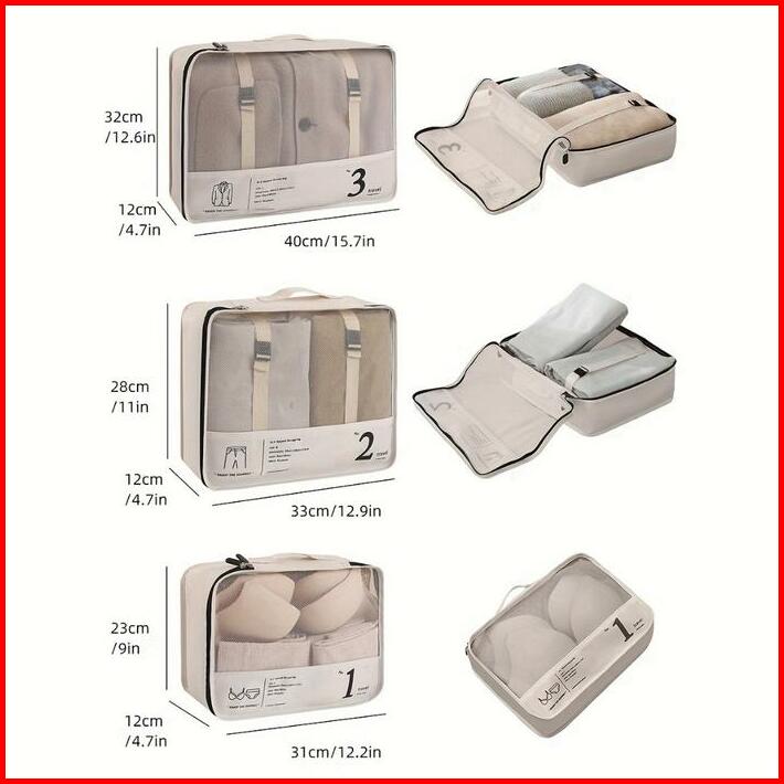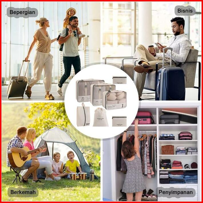 7 In 1 Tas Travel Bag Organizer Packing Cubes Secret Pouch Luggage Organizer Tas Koper Storage Bag Tas Penyimpanan Pakai