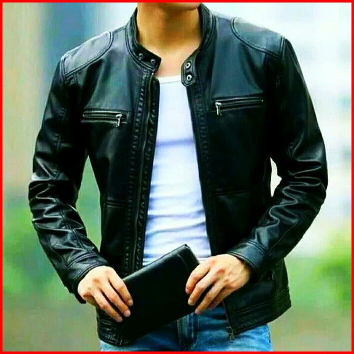 Jaket Kulit Sintetis Hitam Cowok Dewasa Model Pu Lembut Kerja Distro Panjang Lengan Slim Fit Pria Casual Formal Keren