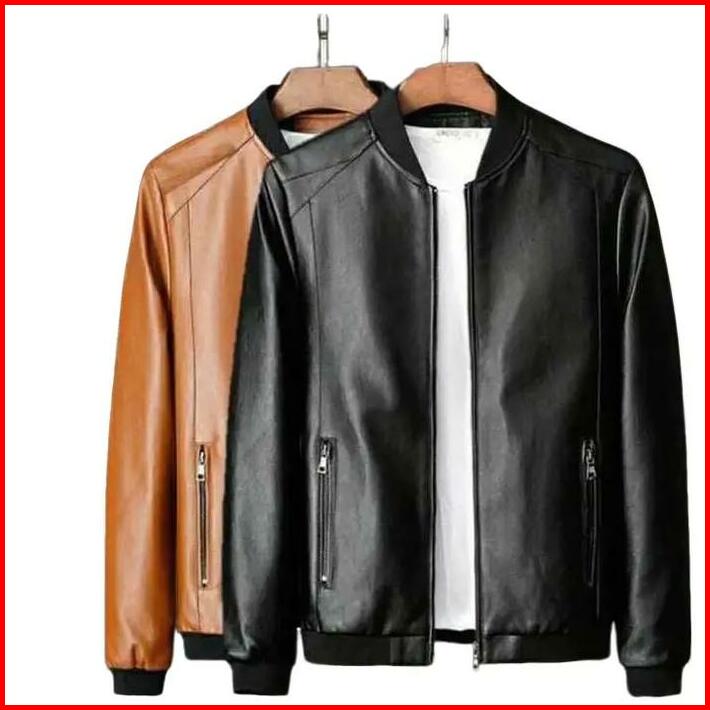 Jaket Kulit Pria Inv Bomber Suede Basic Original Casual Semi Lembut Coklat Hitam Cowok Kantong Waterproof Merah Distro K