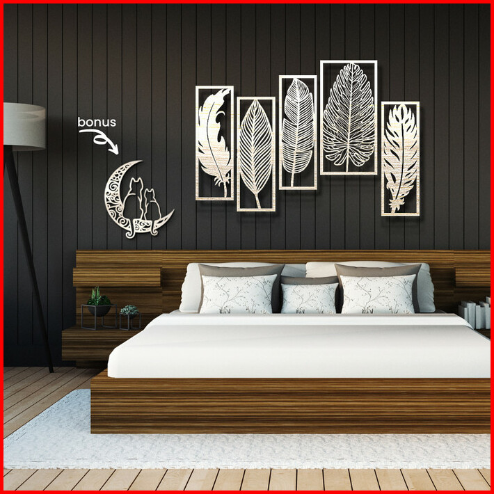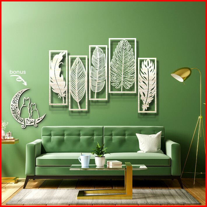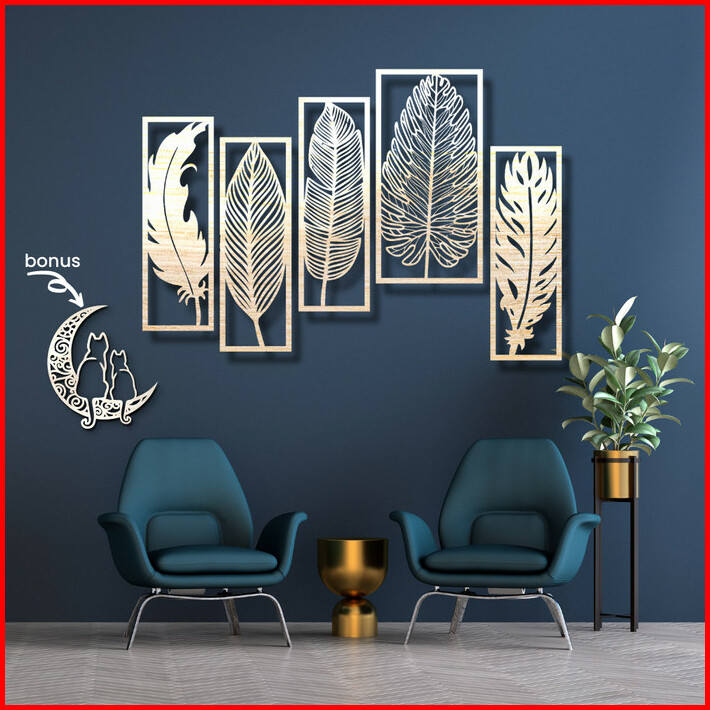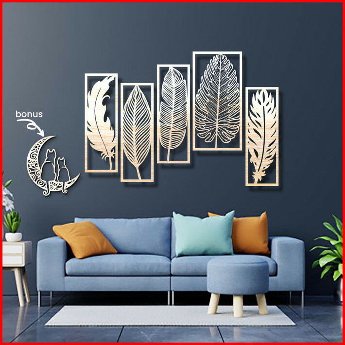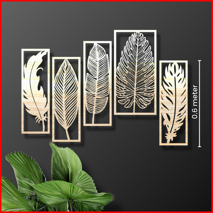 Dekorasi Dinding Kayu 2 Feathers 3 Leaves 1.2m Hiasan Ruang Tamu