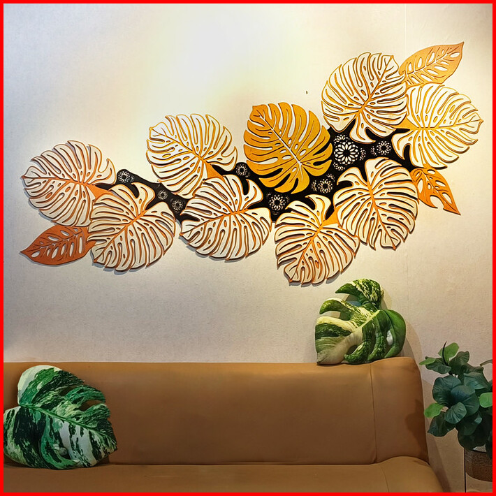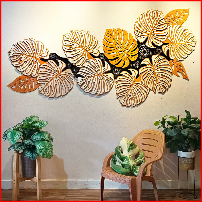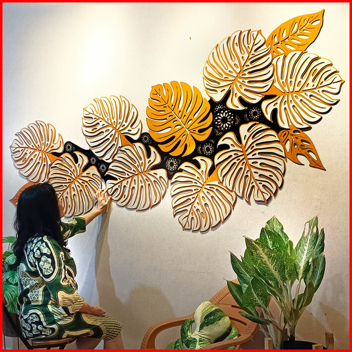 Dekorasi Dinding Grandiosa Monstera 2.25m Hiasan Ruang Tamu Kayu Besar