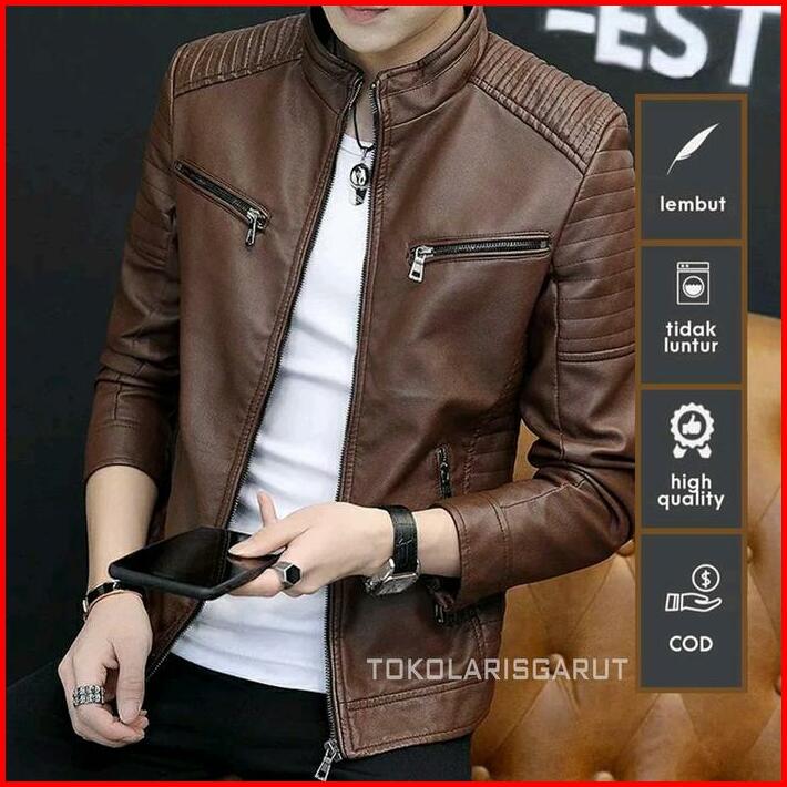 Jaket Kulit Pria Korea Motoran Moge Touring Bikers Santai