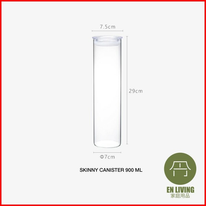 En Living Skinny Canister 900 Ml Toples Kaca Tempat Pasta Kotak