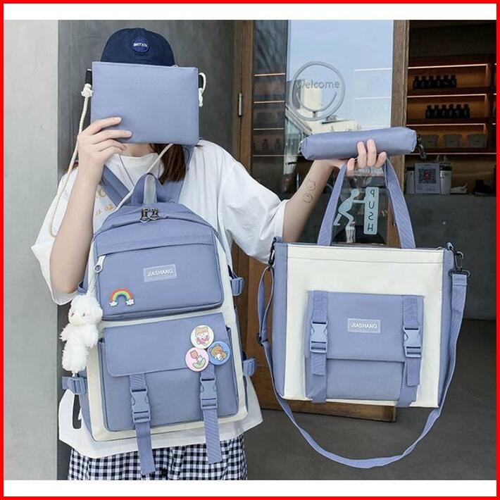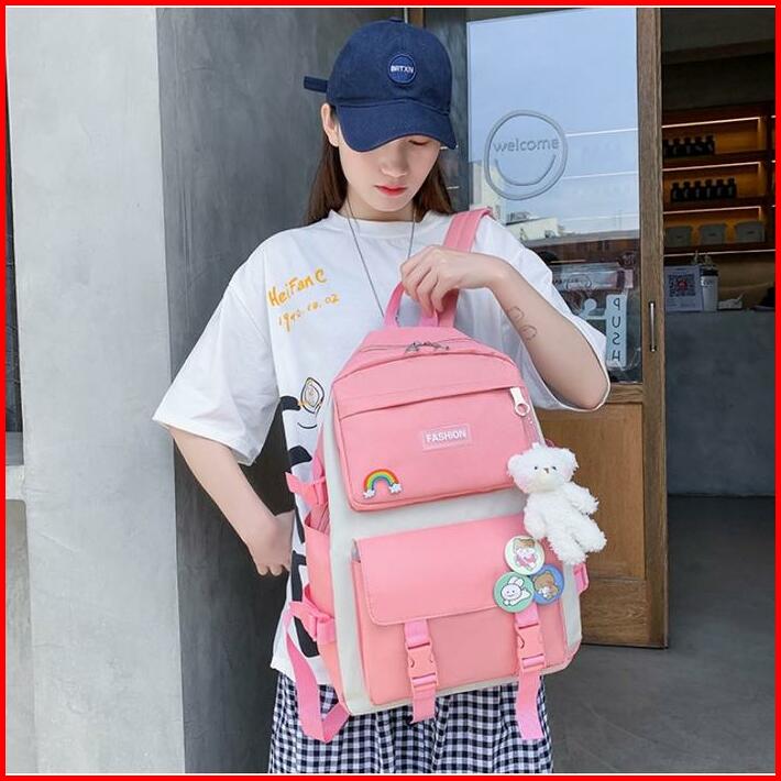 Korea Style Tas Ransel Wanita 4in1 Ks1989 Gratis Boneka Tas Backpack Sekolah Bahan Canvas Berkualitas