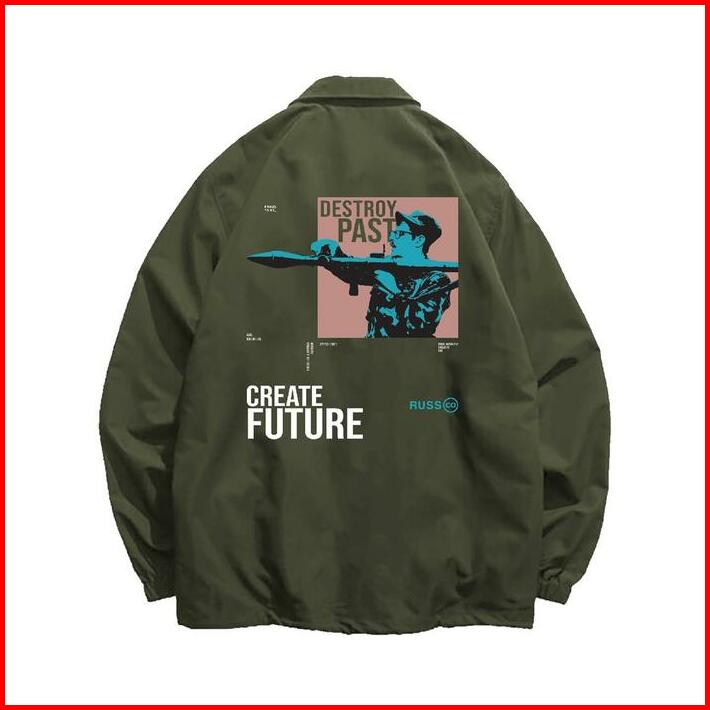 Russ Jacket Coach Pria Destroy Olive Up To Big Size Jaket Bomber Parasut Distro Waterproof Motor Tebal Hitam