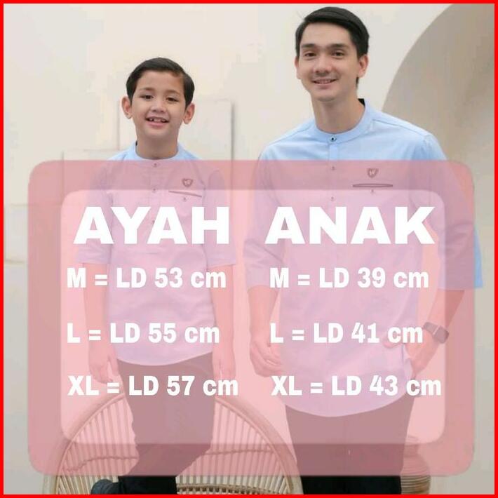 Koko Kurta Lengan 3 4 Couple Ayah Anak Warna Blue Sky Dewasa Muslim