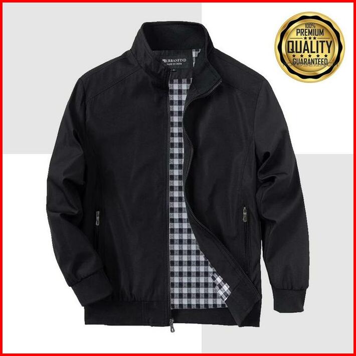 Jaket Pria Dewasa Hurrington Bomber Semi Waterproof Jaket Polos Kantong Nyaman Outdoor Panjang