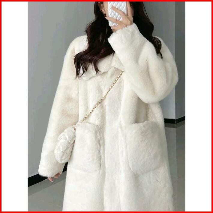 Long Coat Blazer Panjang Bulu Musim Dingin Winter Wanita Jaket Cardigan Outer Hitam Tangan Cewek Tebal High Oversize Bas
