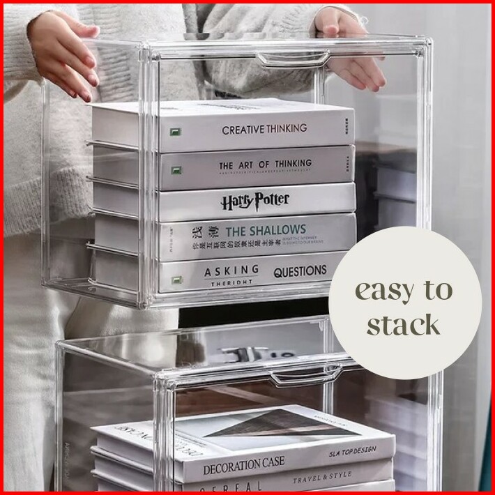 Techaki Transparent Acrylic Book Magazine Organizer Storage Box