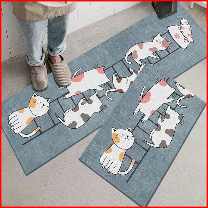 Hl0524 Keset Kaki 2 In 1 Poliyester Keset Dapur Motif Alas Lantai Rumah Keset Kaki Rumah Dekorasi