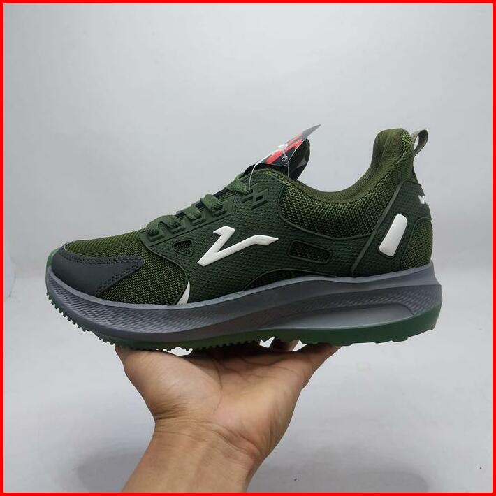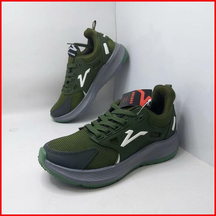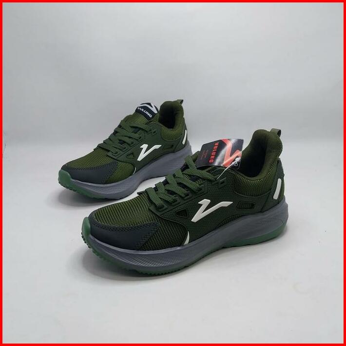 Vulung Sepatu Pria Wanita Sneakers Casual Terbaru Sport Olahraga Lari Senam Batminton Warna Army Lis Putih Shoes Kasual