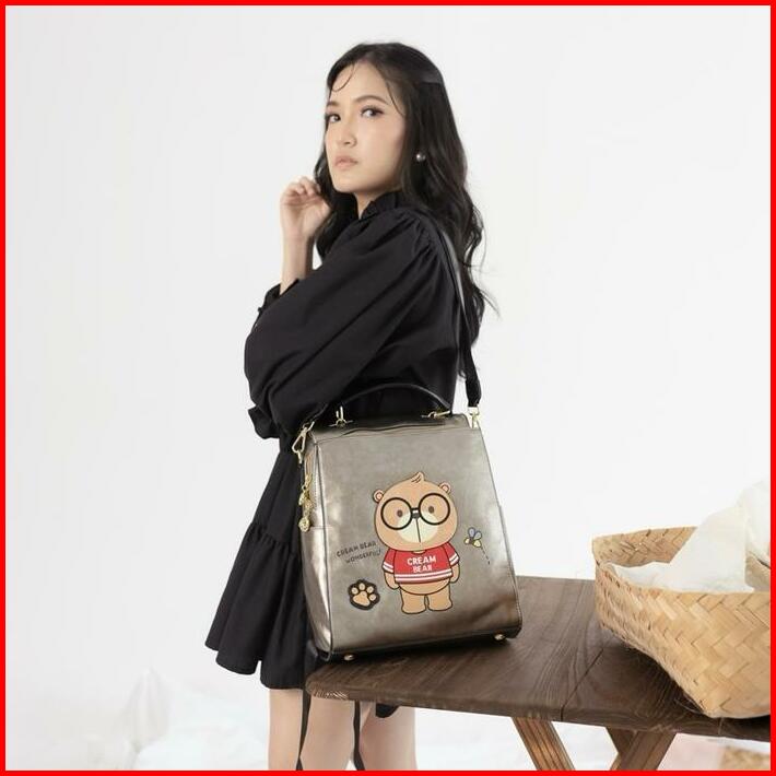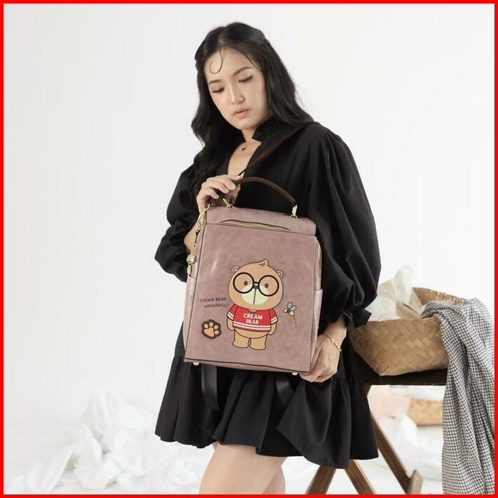 Sammao Creambear Tas Ransel Multifungsi Backpack Kulit Wanita Original C13051