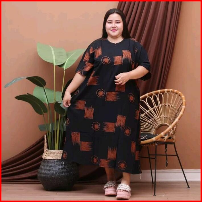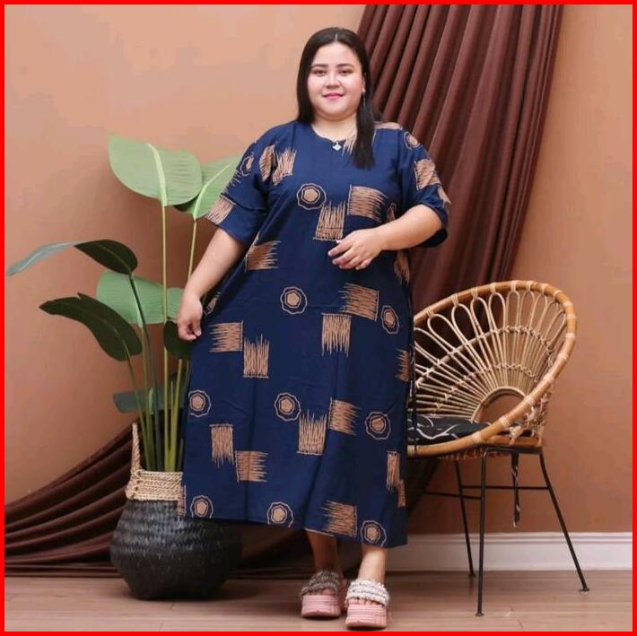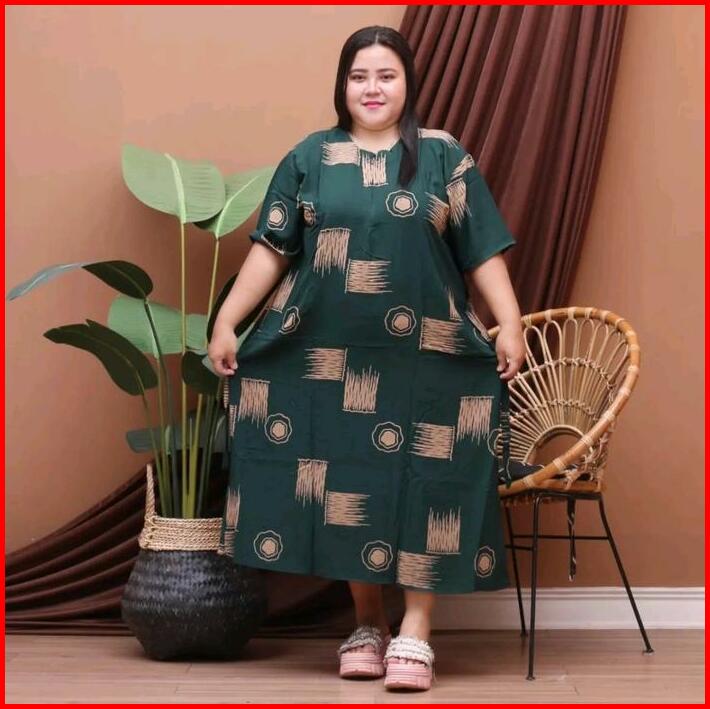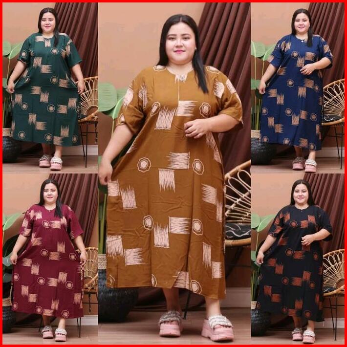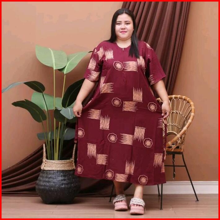 Daster Rayon Jumbo Ld 130 Kain Tebal Panjang 120 Lengan Pendek Busui Kancing Depan Batik Wanita Motif Dinda