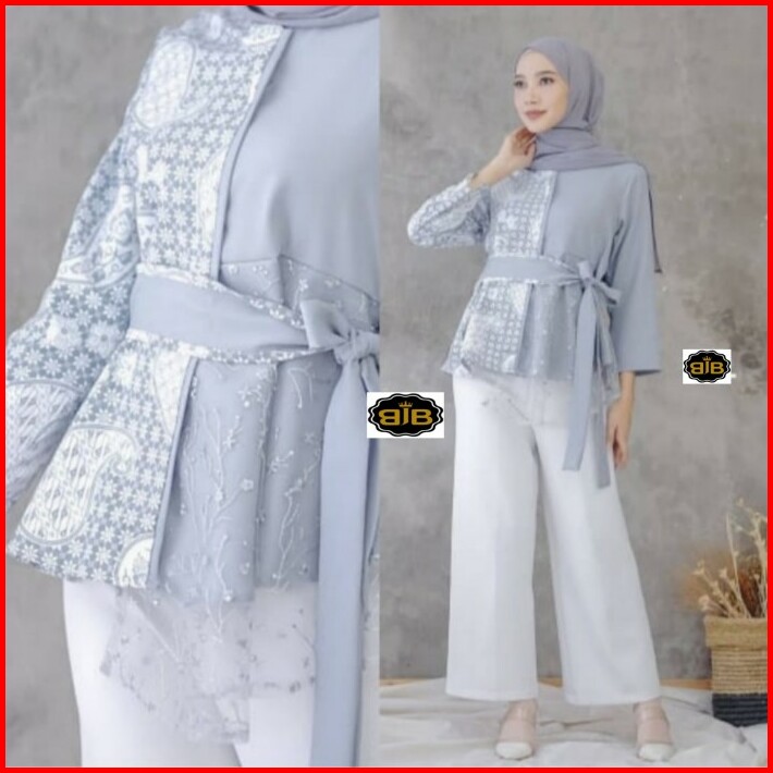 Atasan Batik Wanita Kombinasi Blouse Kantor Kekinian