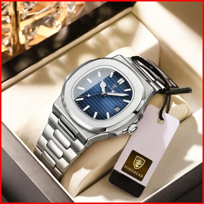 Jam Tangan Original Poedagar Vintage Klasik Swiss Brand Men S Watch Calendar Quartz Watch Pria Black