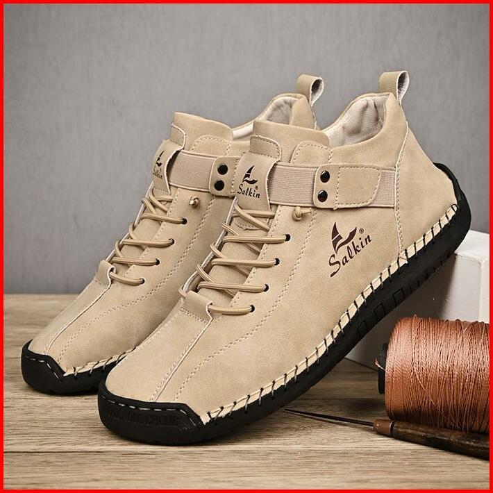 Prelesty Vintage Sepatu Boots Pria Casual Tinggi Kulit Asli Original Formal Kerja Kantor Murah Keren Anti Slip Kekinian
