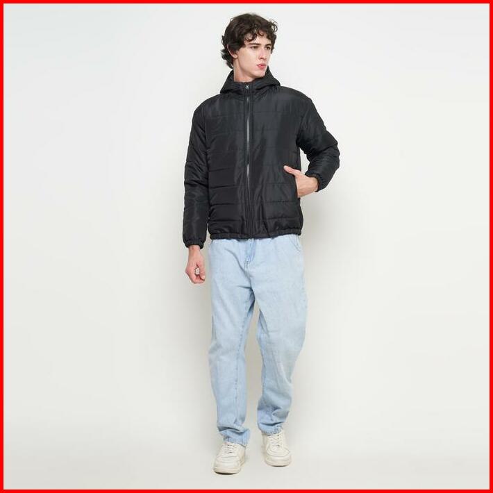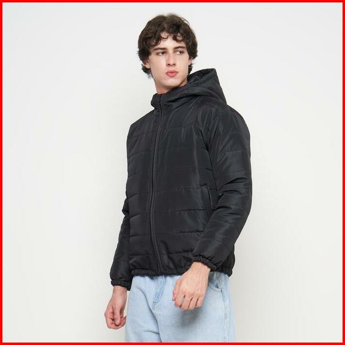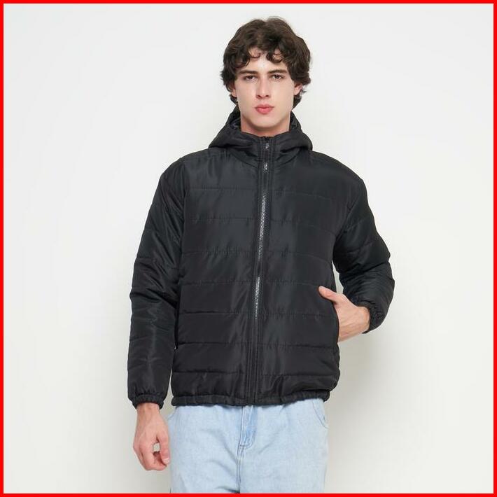 Jaket Puffer Motor Pria Anti Angin Hitam Panjang Waterproof Cowok Distro Casual Bomber