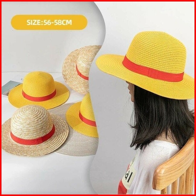 Richhat Topi Jerami Cosplay Luffy One Piece Anyam Pantai Pelindung Sinar Matahari Import Unisex