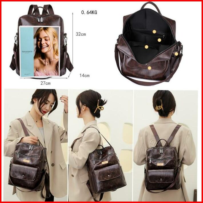 Hanami Tas Ransel Wanita Kulit Coklat Andrea Ta489b7 Backpack Cewek Besar Premium Korea Gendong Punggung Sekolah Kuliah