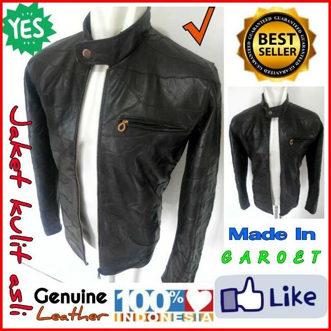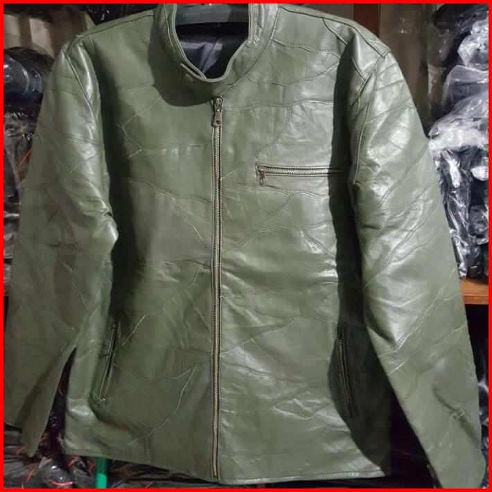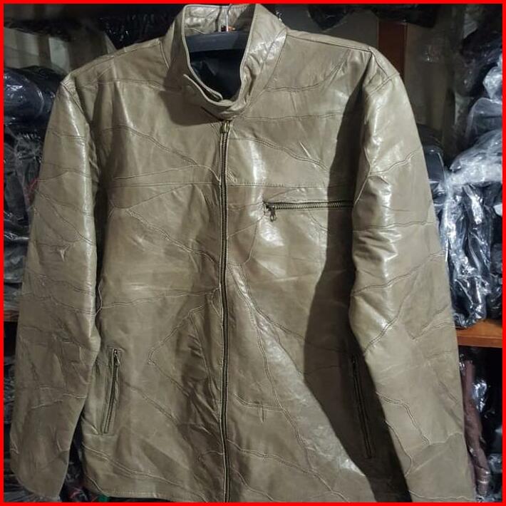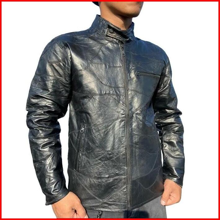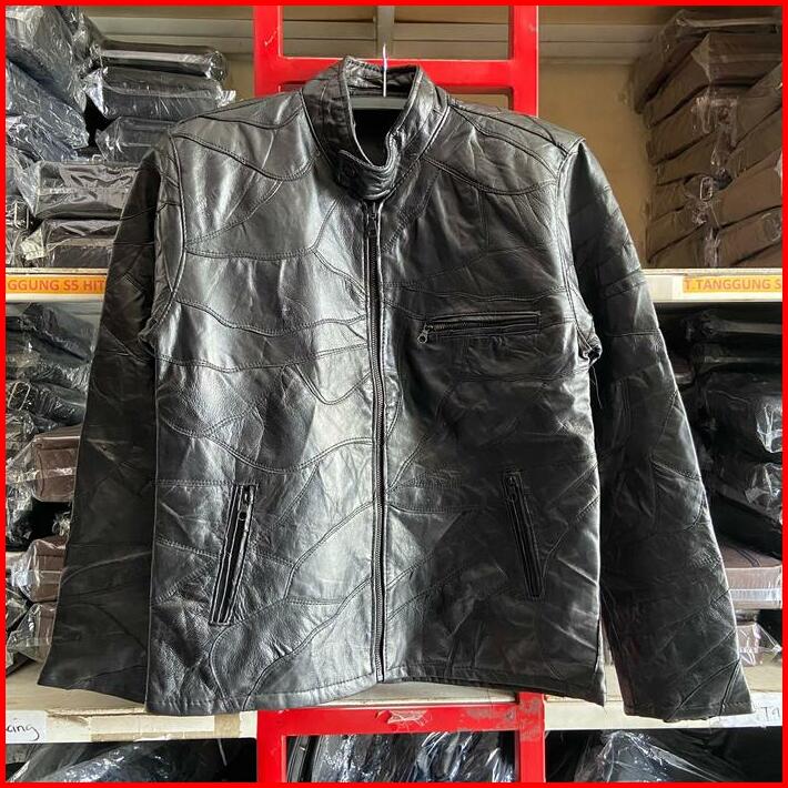 Jaket Kulit Asli Pria Model Sambungan Distro Casual Cowok Keren Tebal Hitam Kerja Jaket Motor Panjang