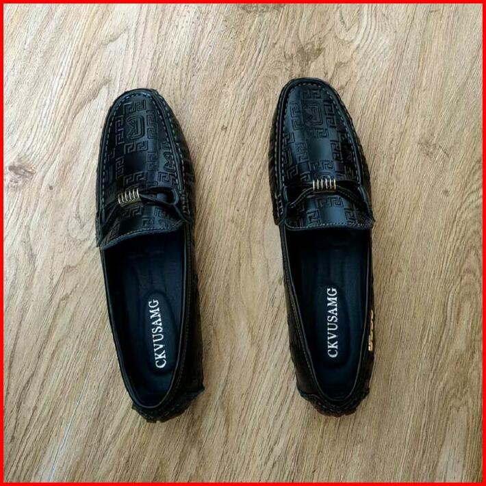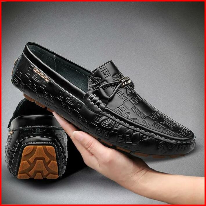 Prelesty Premium Sepatu Pantofel Pria Kulit Asli Santai Full Hitam Formal Pesta Keren Dewasa Sepatu Kekinian Slip On Kan