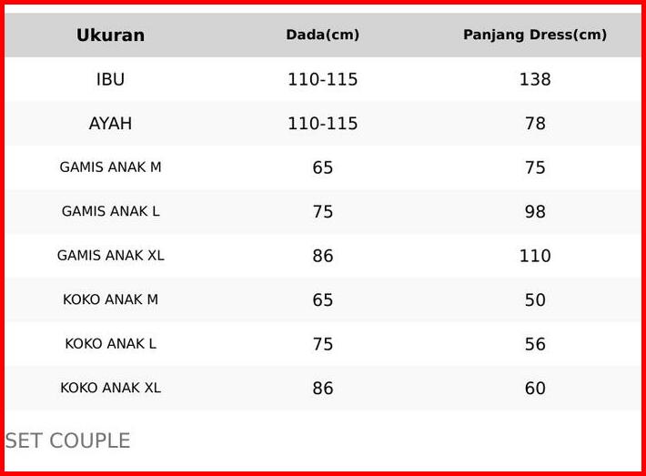 GAMIS IBU, GAMIS ANAK M, GAMIS ANAK L, GAMIS ANAK XL, KOKO AYAH, KOKO ANAK M, KOKO ANAK L, KOKO ANAK XL